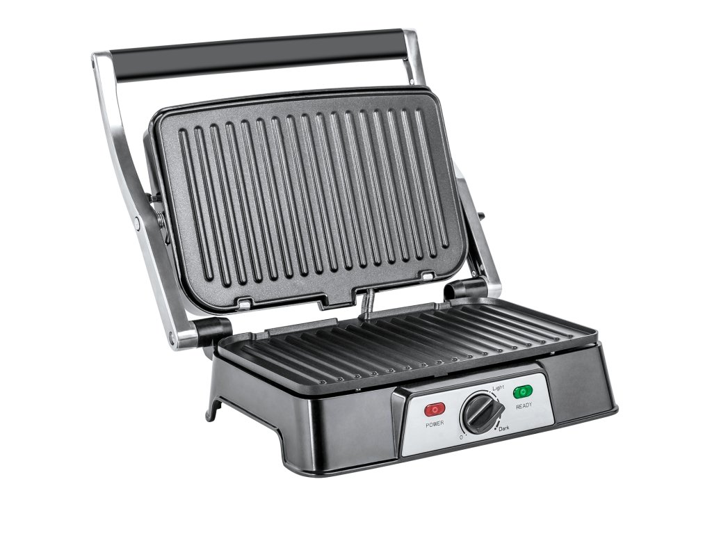 Asztali grill (nyitott), sütő (zárt), kontaktgrill (félig nyitott) Kivehető, tapadásmentes,