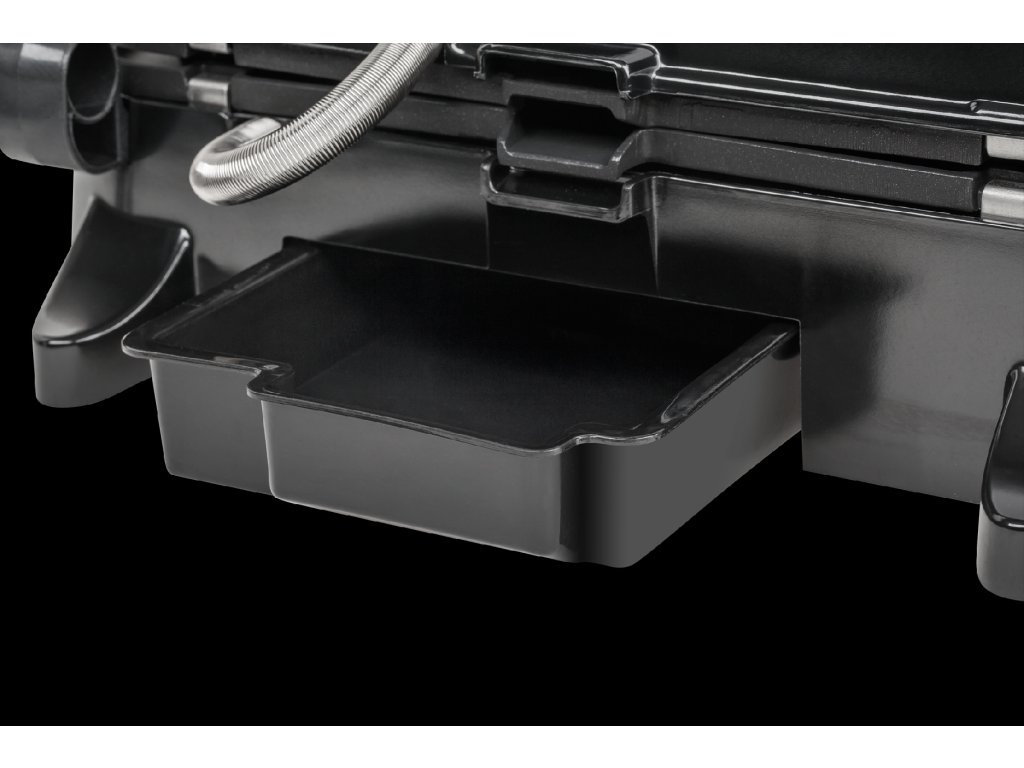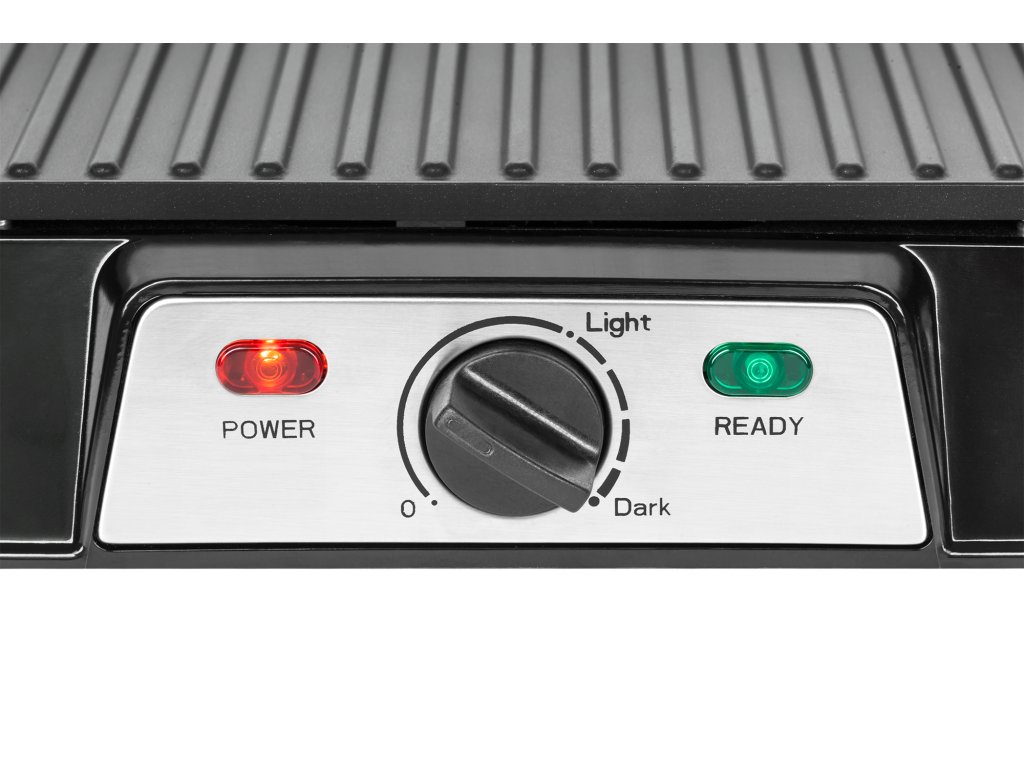 Hullámos betétek Mozgatható zsanér a különböző vastagságú ételek grillezéséhez Zsírlefolyó hornyok Eltávolítható csepegtetőtálca Teljesítményjelző Használatkész állapotjelző