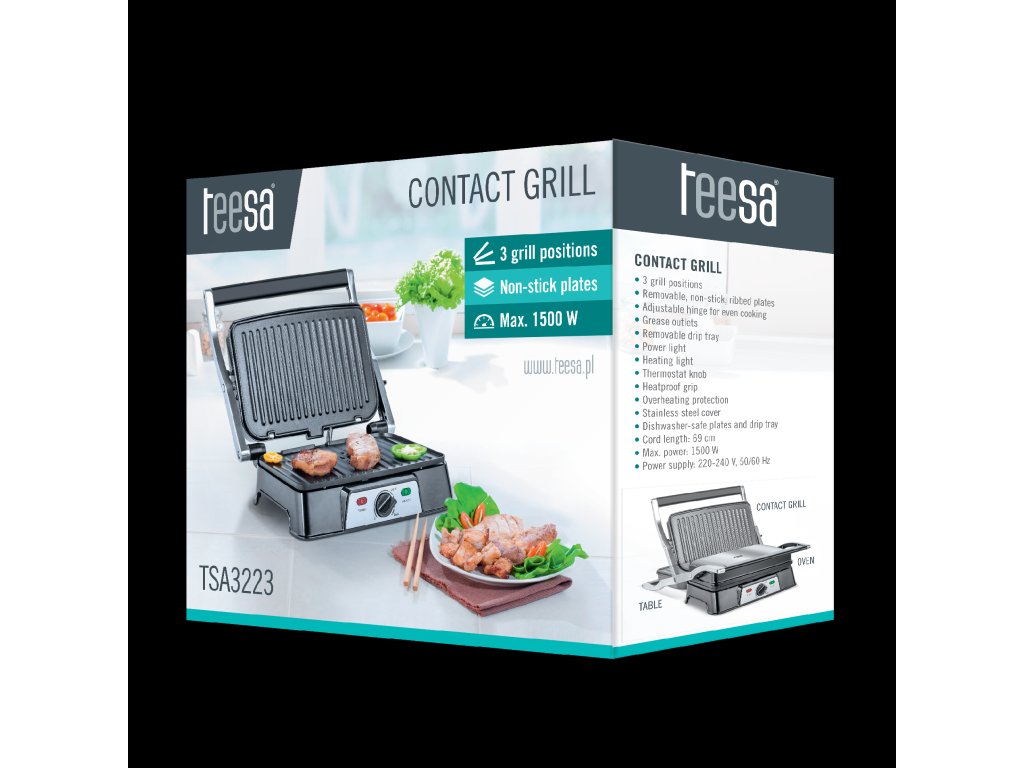 A Teesa grill biztonságos használatát a csúszásmentes lábak, a nem melegedő fogantyú és a túlmelegedés elleni védelem garantálja. A legfontosabb azonban, hogy a mindennapi étkezési kísérője nem igényes. A bélések és a csepegtető tálca mosogatógépben történő mosásának kényelme tovább növeli a vágyat, hogy finom reggeliket vagy vacsorákat töltsön vele.