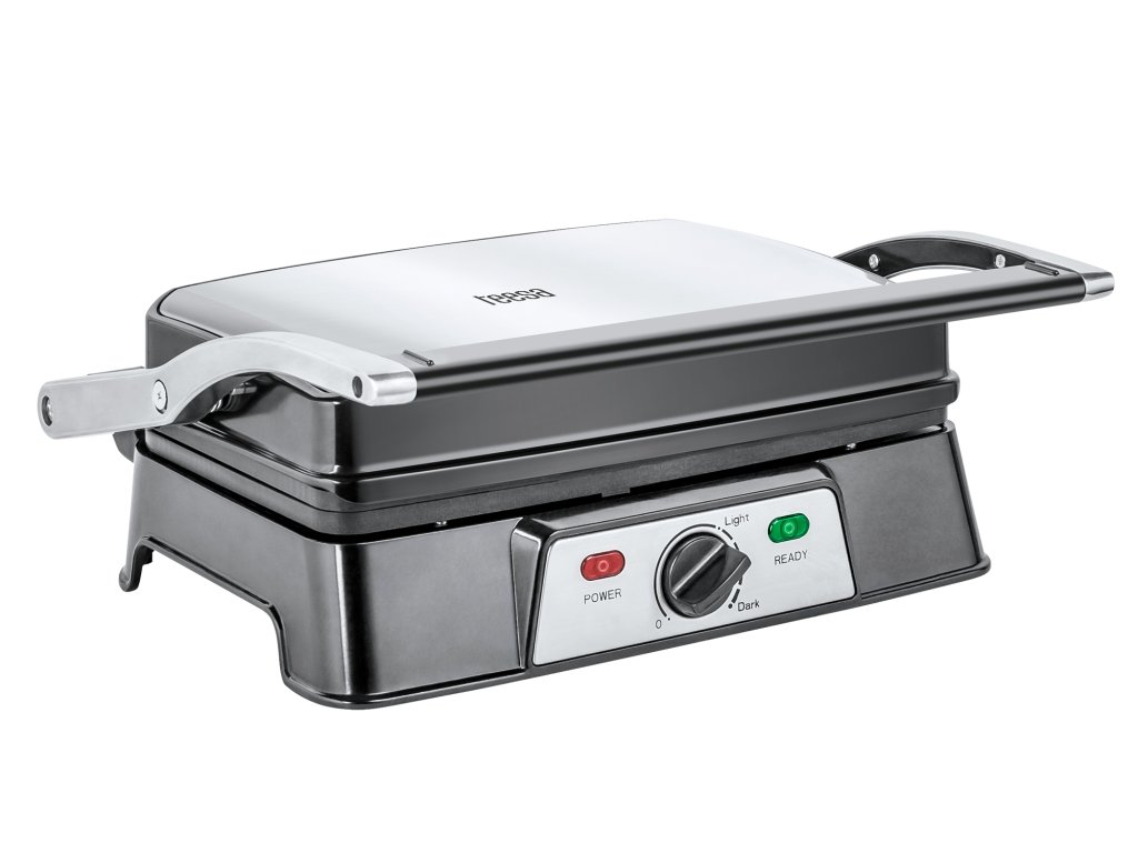 Ropogós paninit szeretne? Átjönnek a barátai, és szeretne egy gyors és egészséges harapnivalóval kedveskedni nekik? Vagy talán csak egy grillezett hamburgerről álmodozik a tél közepén? Mindez könnyebben megvalósítható, mint gondolná. A Teesa multifunkciós elektromos grill segít Önnek mindezen vágyak teljesítésében. A készülék kivehető, hornyolt betétekkel rendelkezik , amelyek segítségével a három grillezési pozíciónak köszönhetően számos ízletes ételt készíthet.