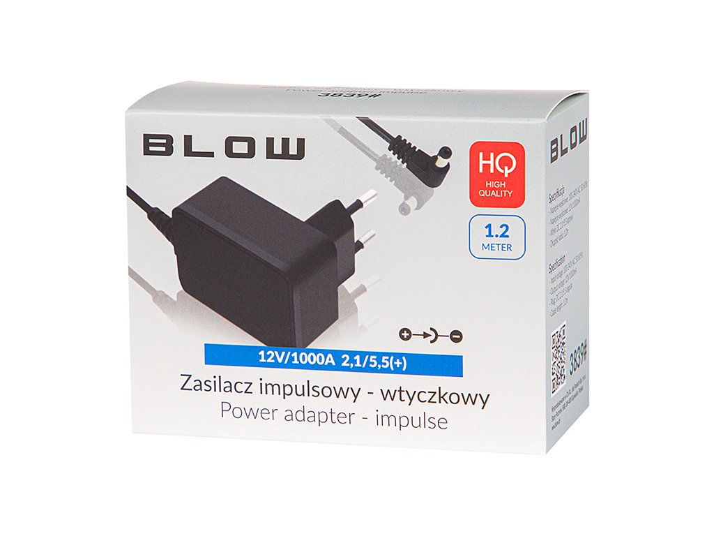 Kapcsoló tápegység 12V/1000mA 2,1/5,5 (+)