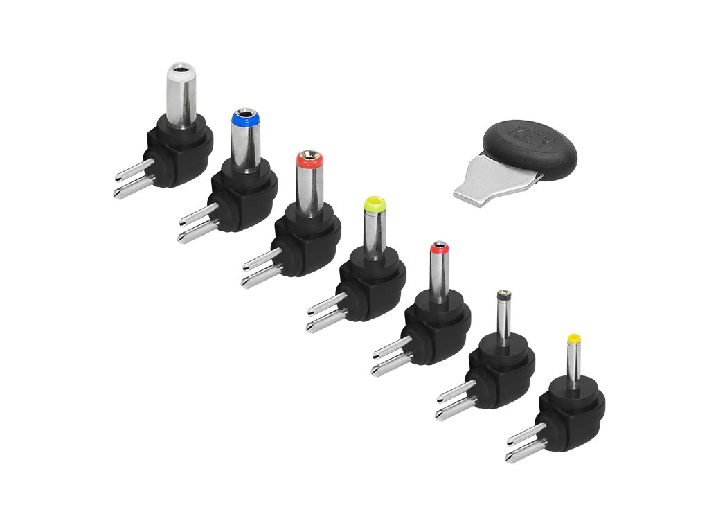 - 7 cserélhető csatlakozó ( 2,5*0,7mm, 3,5*1,3mm, 4,0*1,7mm, 3,0*1,0mm, 5,0*1,7mm, 5,5*2,1mm, 5,5*2,5mm)