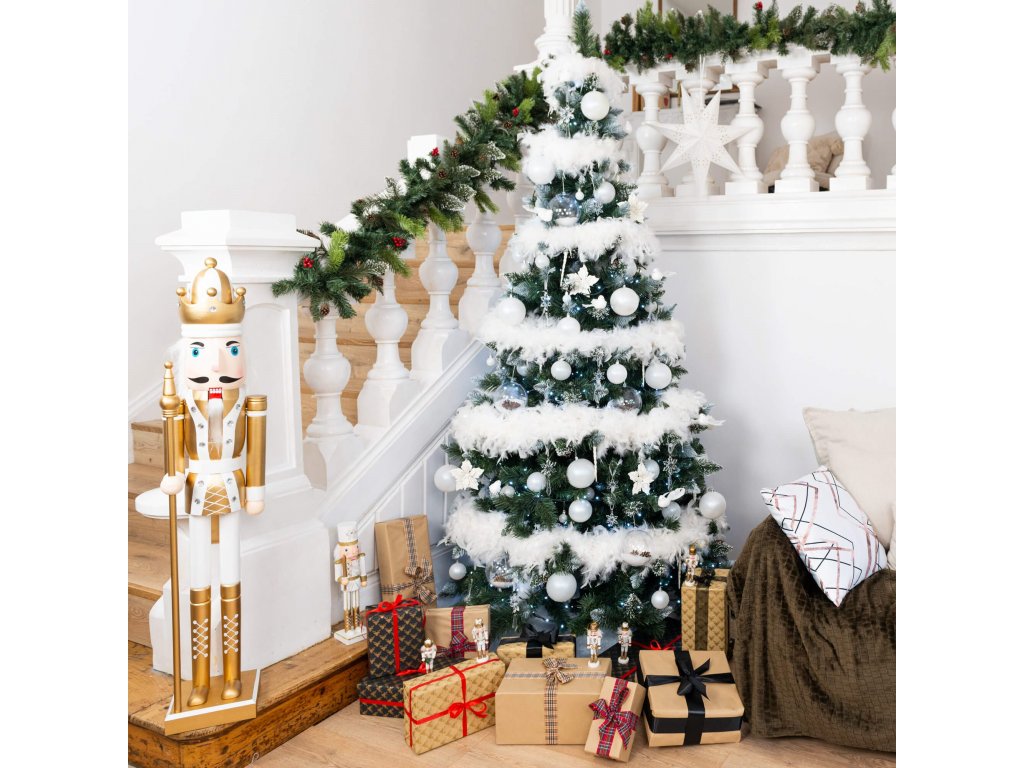 Továbbá: természetes fenyőtobozok, matt hatás az ágakon (fehér rész, fehér csillogás)