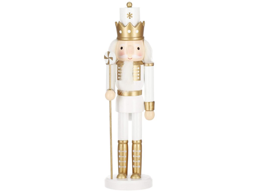 - Konstrukció elemei: fehér sapka arany koronával, fehér-arany ruházat, arany cipők, arc szemekkel és bajusszal, kiálló orr, ősz haj és szakáll, diónyílás a szájban, amely a hátulról emelhető kar felemelésével nyílik, bot a kézben