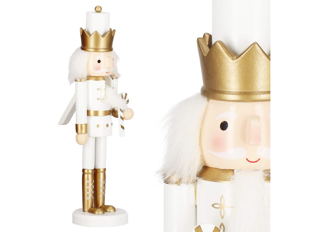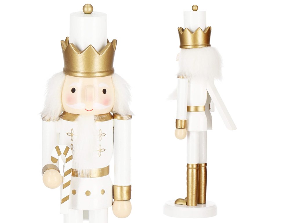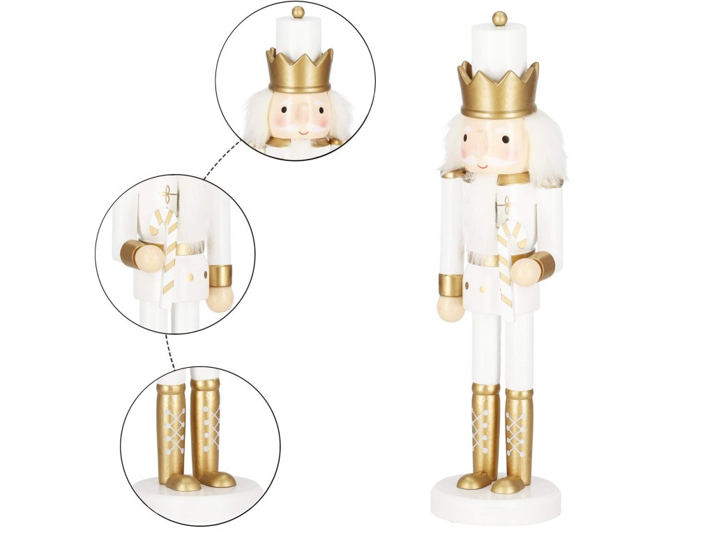 - Konstrukció elemei: fehér sapka arany koronával, fehér-arany ruha, arany cipők, arc szemekkel és bajusszal, kiugró orr, szürke haj és szakáll, diótörő nyílás a szájban hátulról felemelhető karral, kézben nyalóka
