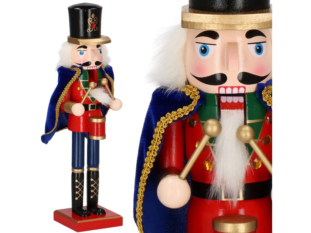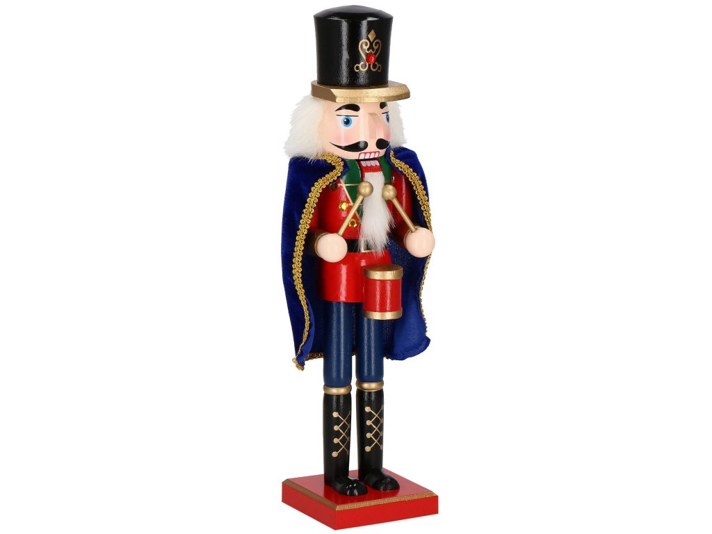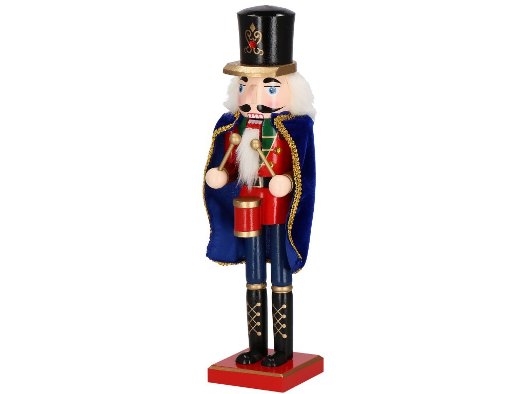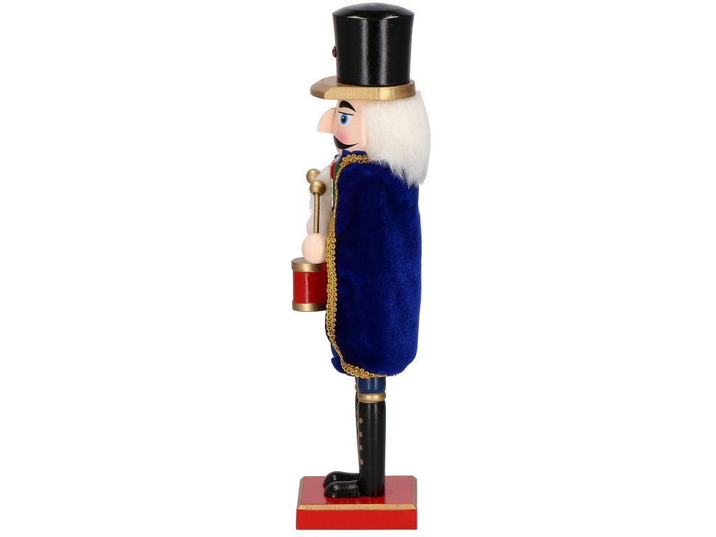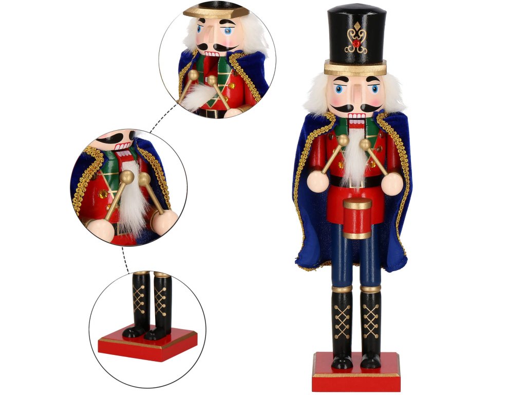 - Konstrukció elemei: fekete sapka arany siltettel, piros-zöld ruha, tengerészkék nadrág, fekete cipők; arc szemekkel és bajusszal; kiálló orr, ősz haj és szakáll, szájban nyílás, amely a hátulról emelhető karral nyitható, a kezében dobverő a doboláshoz