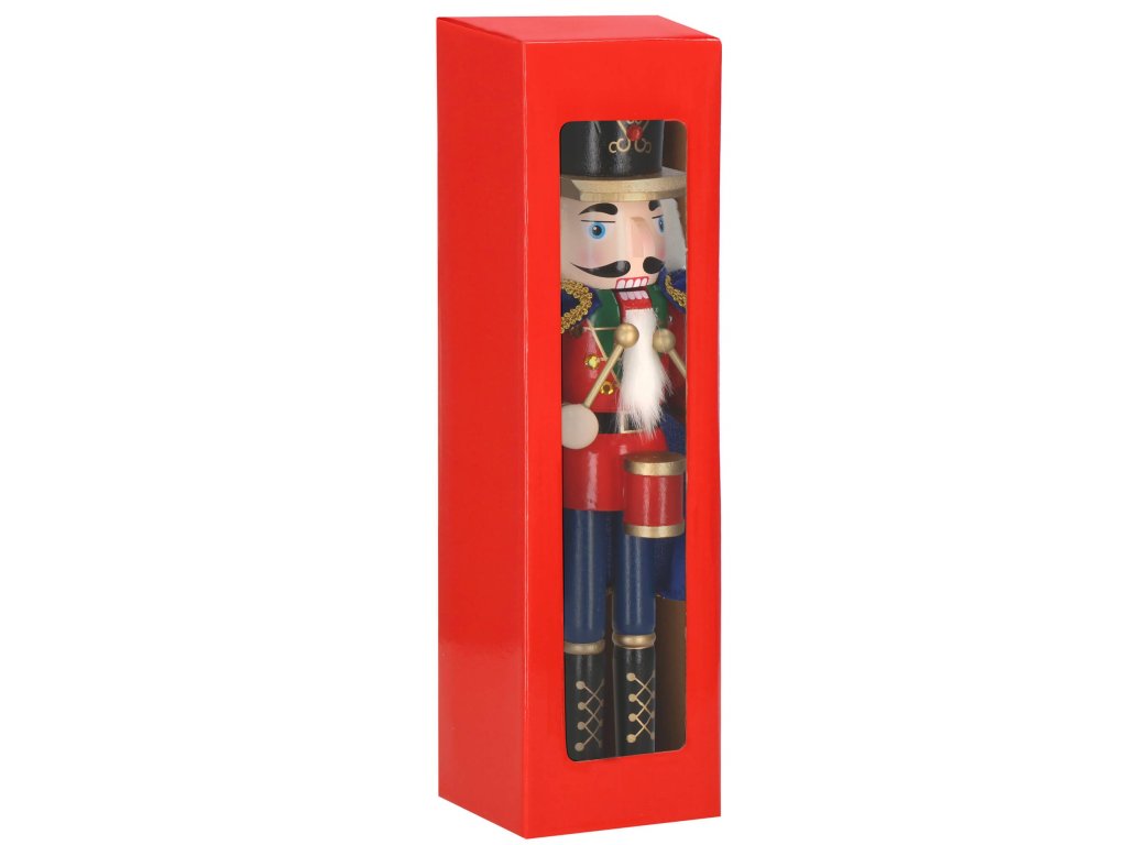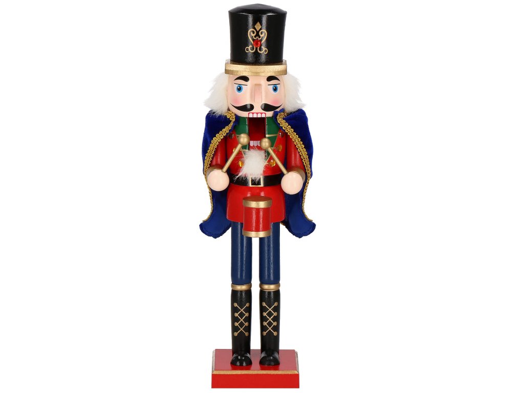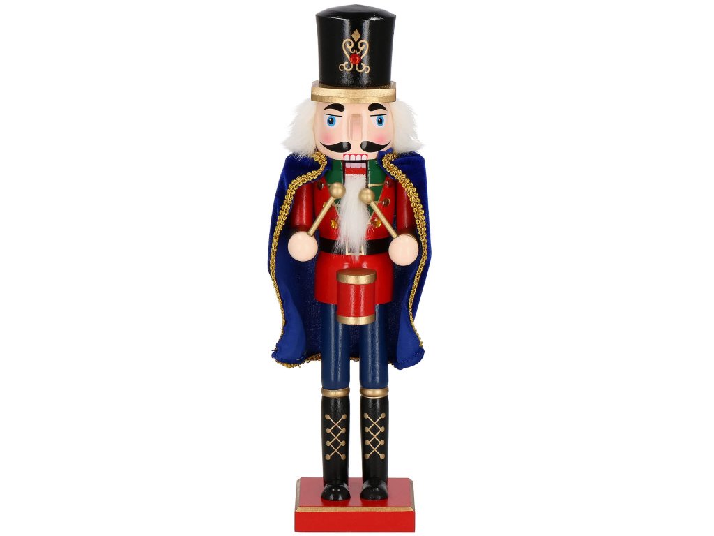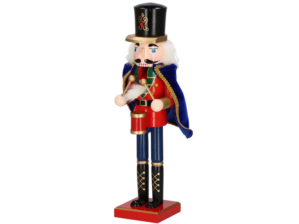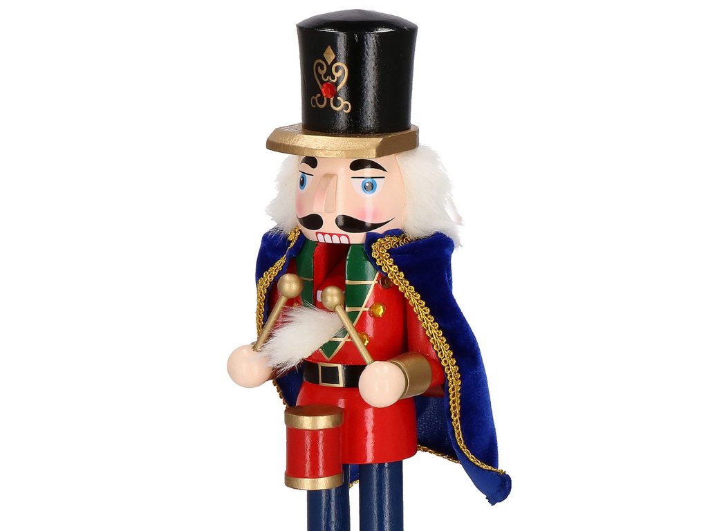- Konstrukció elemei: fekete sapka arany siltettel, piros-zöld ruha, tengerészkék nadrág, fekete cipők; arc szemekkel és bajusszal; kiálló orr, ősz haj és szakáll, szájban nyílás, amely a hátulról emelhető karral nyitható, a kezében dobverő a doboláshoz
