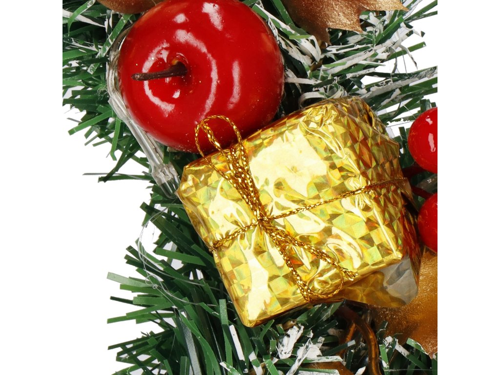 - Díszítés: csipkebogyó, fenyőtobozok, tök, ajándékok, arany levél