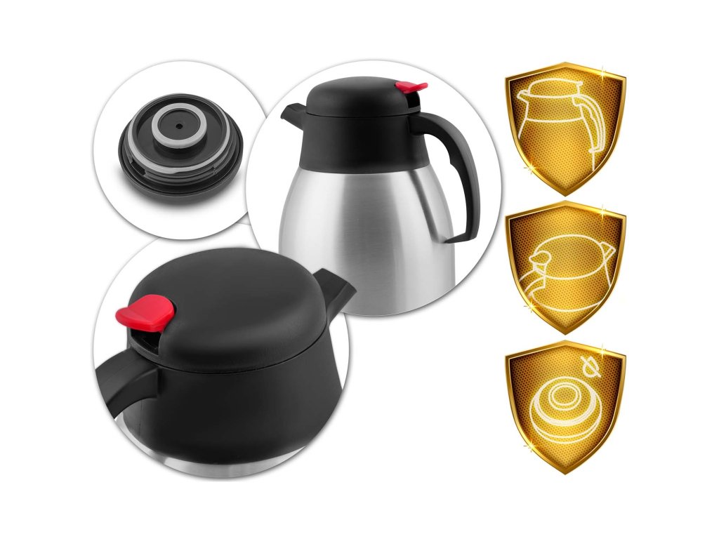 A fedelén lévő piros gombnak köszönhetően egy kézzel is könnyedén felszolgálhatja az italokat.