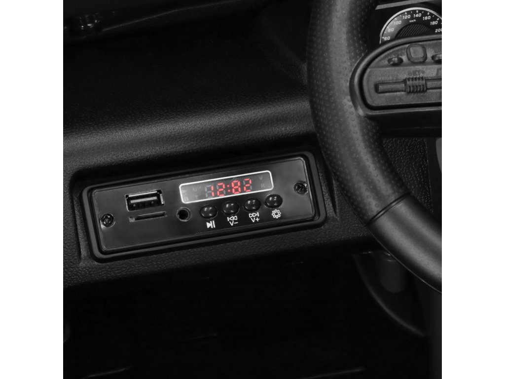 - A műszerfal bal oldalán zenei lejátszó külső források számára található, jobb oldalon ON/OFF gomb és előre/hátra kapcsoló. A kormánykeréken két gomb található: kürt és zene. A gázpedál a jármű mozgását eredményezi.