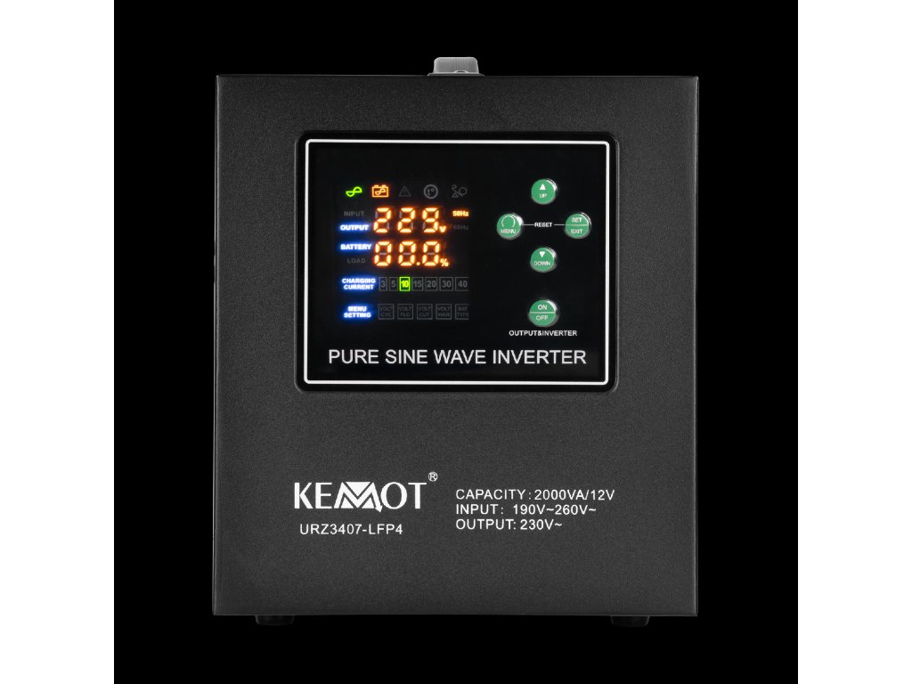 KEMOT PROsinus-2000 szünetmentes tápegység tiszta szinuszhullámú inverterrel és 12V 230V 2000VA/1200W töltőfunkcióval
