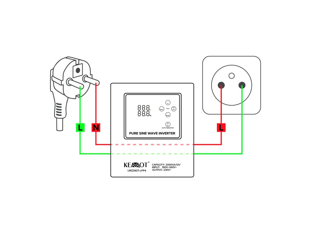 - Kimeneti feszültség: 230 V AC +/-8%
