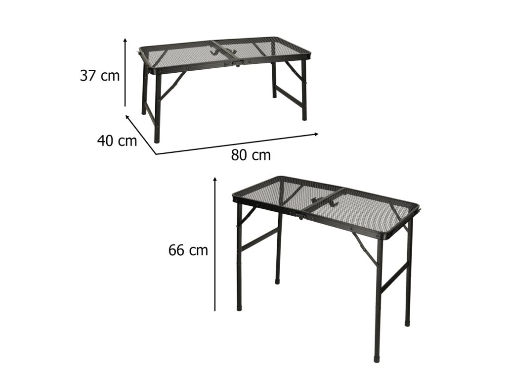 és kényelmet szem előtt tartva terveztek, összecsukható bőrönddé, és könnyen elfér a csomagtartóban vagy a szekrényben. A gyors összeszerelés időt takarít meg, és lehetőséget nyújt azonnal élvezni a szabad időt. Az asztal ideális étkezés, társasjátékok és akár számítógépes munka számára is. Az összecsukható túraasztal elengedhetetlen része minden szabadtéri rajongó felszerelésének. Masszív alumínium szerkezet és fém hálólap