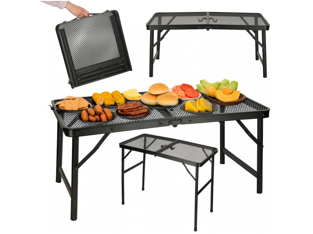 mellett kínál, miközben a vas hálólapja erőt és lélegzőképességet ad. Ez egy olyan modell, amely kiválóan illeszkedik a természetbe - az alumínium túraasztal intenzív használat és kedvezőtlen időjárási körülmények között is tartós marad. Az egyszerű tisztítás és a gyors szárítás további előnyök, melyeknek köszönhetően kiváló választás a strandra, telekre vagy fesztiválra. A túraasztal zárómechanizmussal a bicsaklás ellen használat közben sem inog, még egyenetlen felületen sem. A csúszásmentes lábaknak köszönhetően biztos lehet benne, hogy az asztal étkezés vagy főzés közben nem mozdul el. Ideális a családok, utazók és mindazok számára, akik értékelik az utazóasztalokat gyors összeszereléssel és