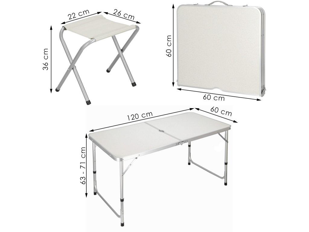 - A készlet tartalma: 4x kempingszék / 1x kempingasztal