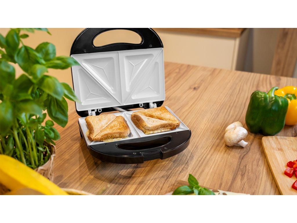 Unja a klasszikus szendvicseket? Itt az ideje a változásnak! A Teesa TSA3222 szendvicskészítő tökéletes eszköz az ízletes falatok egyszerű elkészítéséhez. A nagy, 800 W-os teljesítményének köszönhetően a készülék pillanatok alatt felmelegszik, így nagyon gyorsan elkészítheti a reggelit az egész család számára. A kenyérpirító ráadásul tapadásmentes, kerámia felülettel ellátott lemezekkel rendelkezik, így biztosan nem fog időt pazarolni a hosszadalmas tisztítással.