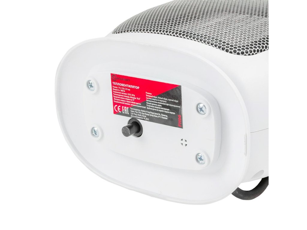 - Az eszköz 2 fokozatú állítással rendelkezik: fűtés 800 W legfeljebb 10 m helyiségekhez, fűtés 1800 W legfeljebb 18 m .