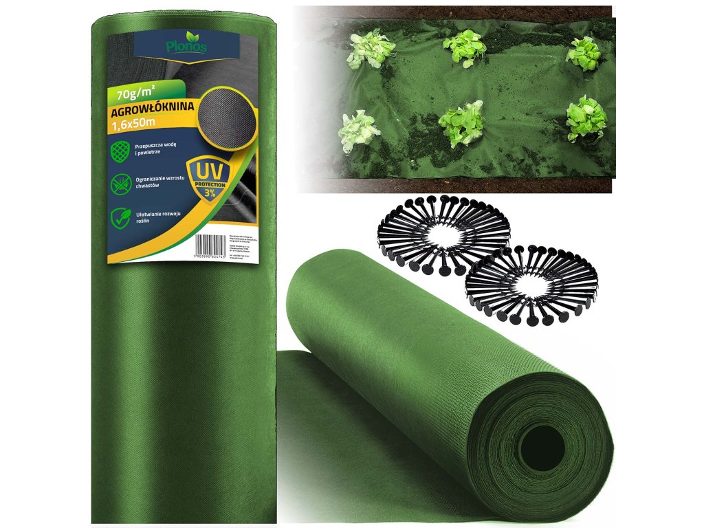 Kerti agroszövet 1,6 m x 50 m 70 g/m2 + 100 szögek Plonos - zöld