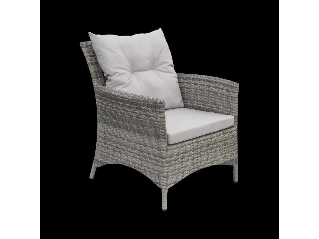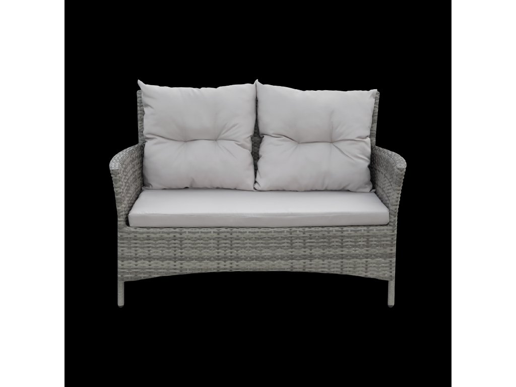--------- Fő jellemzők ---------- Technorattan színe: szürke-bézs Párna színe: világosszürke Szövet: kézzel készített PE műanyagból (technorattan), dupla, félköríves Felület: porszórtan bevonva Váz: alumínium, porszórtan bevonva, fekete Párnahuzat: