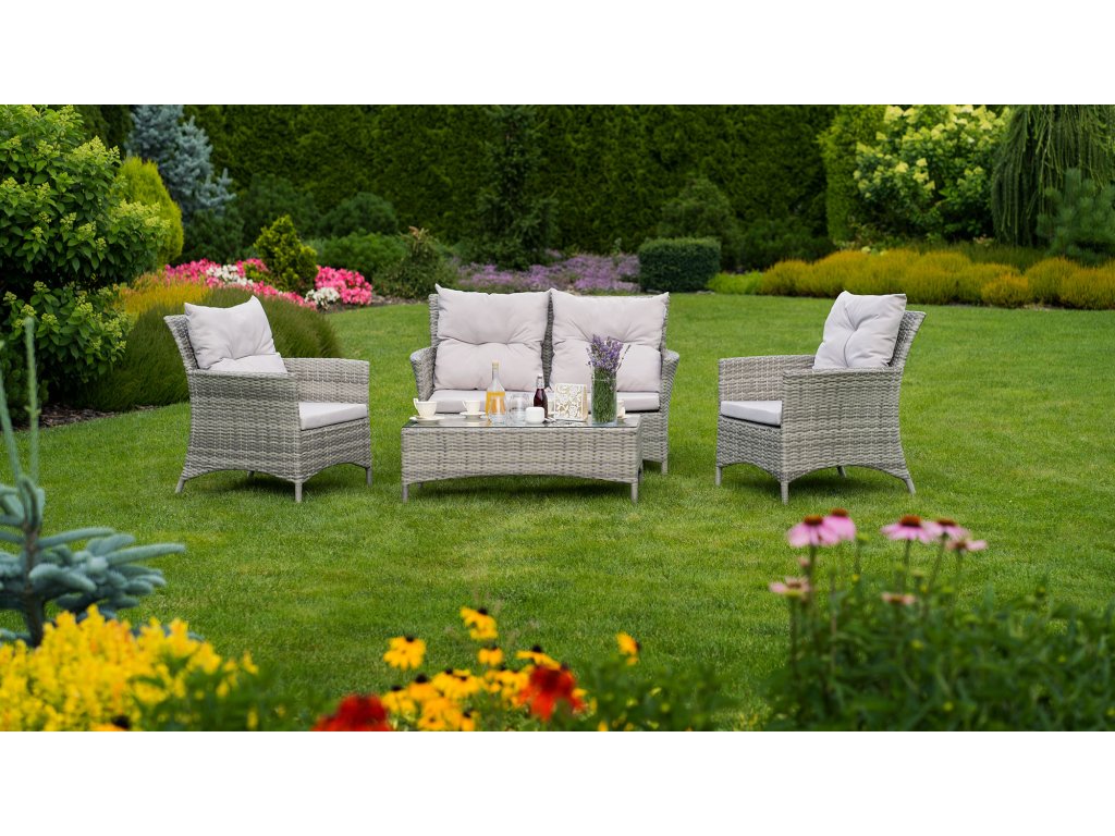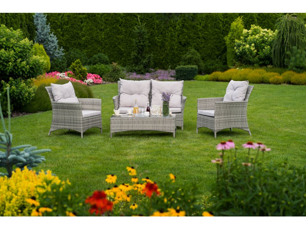 A Lily 1 kerti bútorokat robusztus és tartós konstrukció és nagyfokú használati kényelem jellemzi. Rendkívül praktikus megoldás az edzett üveglap, amelynek köszönhetően a kerti asztalra félelem nélkül helyezhet forró ételeket. A székekre és a kanapéra helyezett puha kerti párnák határozottan növelik a kényelmet a nyári pihenés és kikapcsolódás során. Fontos, hogy az ülőpárnák mellett ebben a szettben hátpárnákat is talál.
