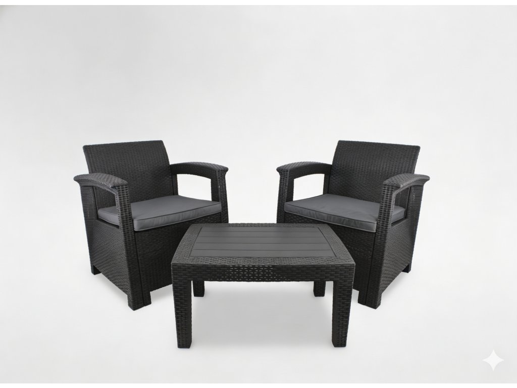 KERTI BÚTOR SZETT - ANTRACIT (2 FOTEL, ASZTAL) *0852