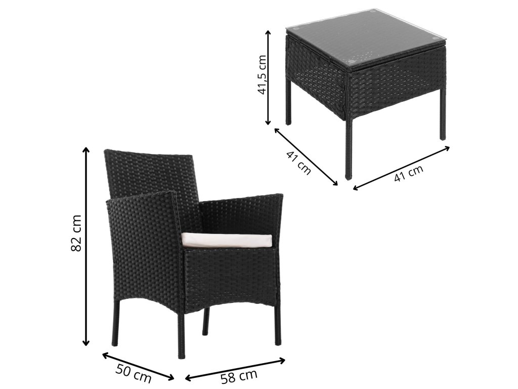 - Tartalmazott elemek: 2x szék, asztal üveglappal