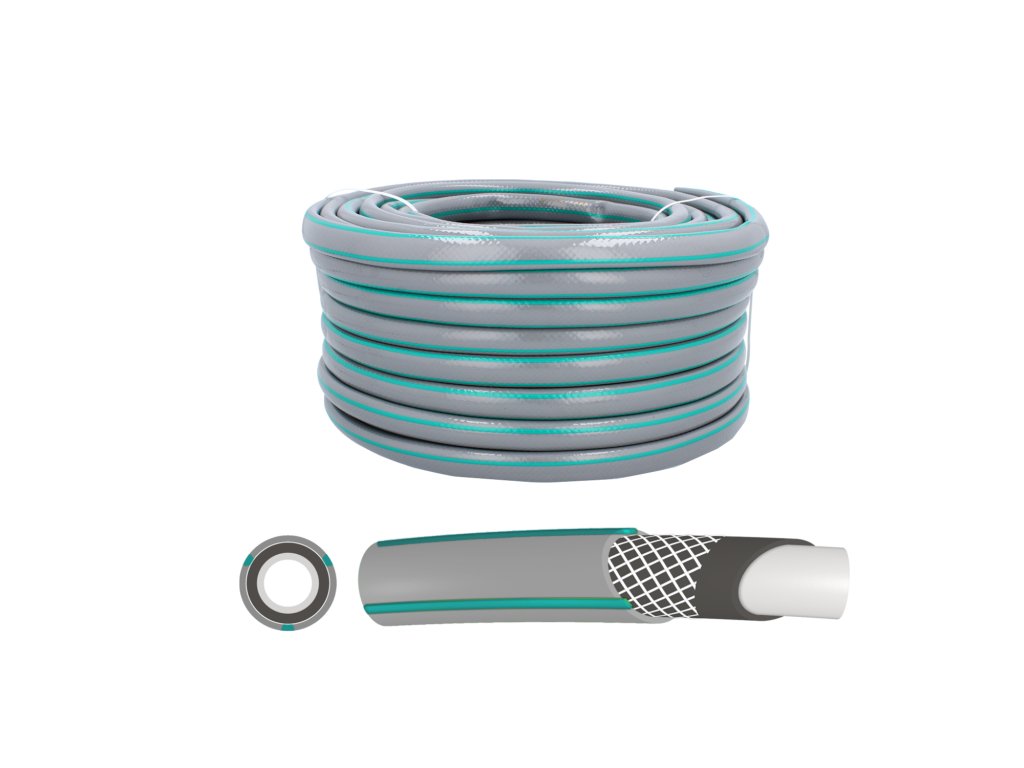 A PREMIUM PLUS kerti tömlő 30 m hosszú és 1/2" átmérőjű, egy kiváló minőségű termék, amely számos kerti munka során megállja a helyét. Szlovákiában készült, és merev 4 rétegű szerkezettel rendelkezik, amely rugalmas PVC-ből, szuszpenziós polivinil-kloridból, tereftalátból és más összetevőkből készült. Ezen kívül a tömlő textil erősítéssel van ellátva, ami garantálja a magas ellenállóképességét a sérülésekkel szemben, és növeli a tartósságát. A tömlő víz szivattyúzására készült, munkanyomása 8 bar (20°C-on), és a szakítónyomása 24 bar felett van (20°C-on). A tömlő széles hőmérsékleti tartományban működik -10°C-tól +60°C-ig, ami azt jelenti, hogy egész évben használható.