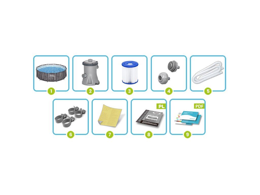A KÉSZLET TARTALMA- Medence vázzal 366 x 100 cm.