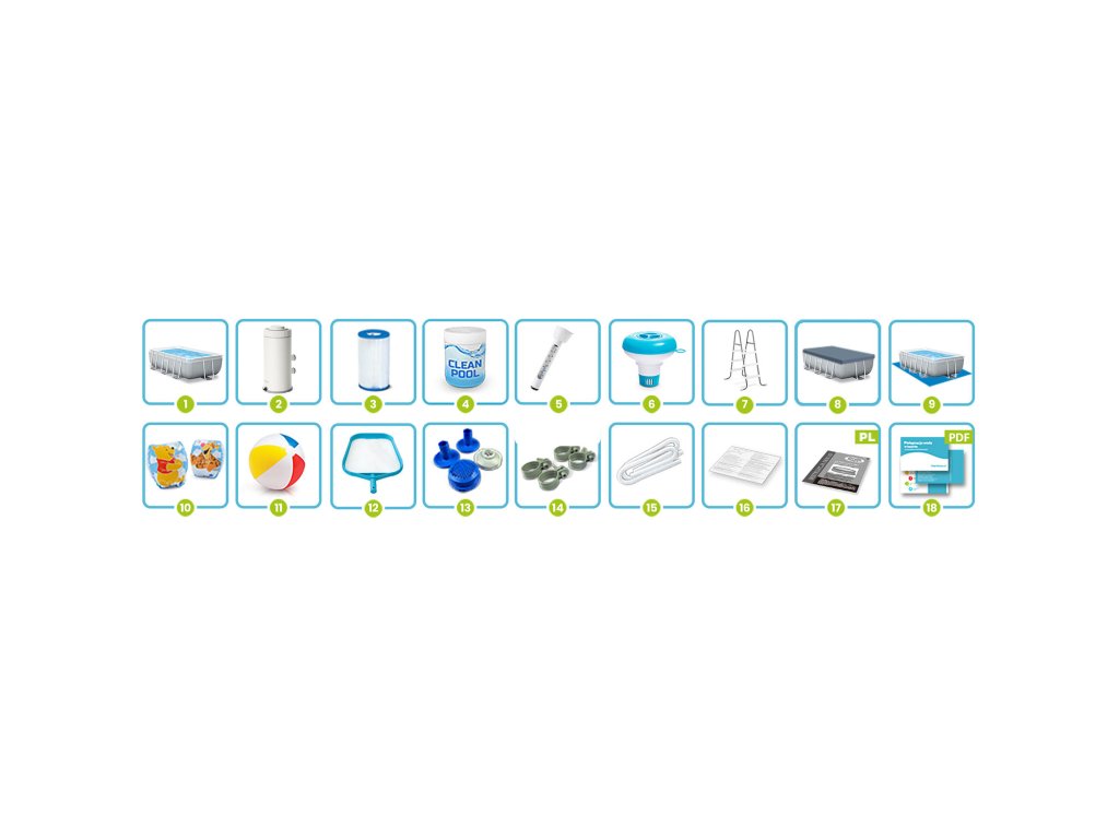 KÉSZLET TARTALMA- Medence szerkezettel 300 x 175 x 80 cm