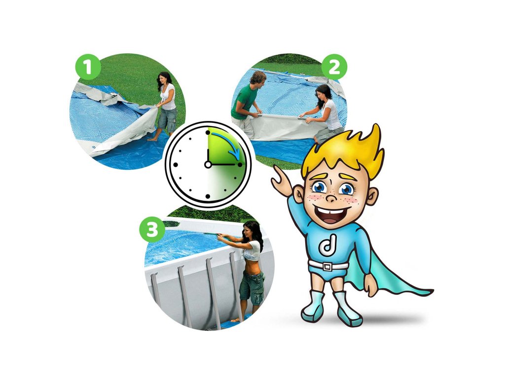 Most egy ilyen nagy medence összeállítása csak egy pillanatig tart