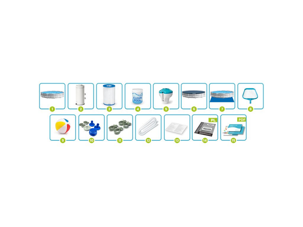 Kerti keretes medence 366 x 76 cm MEGA KÉSZLET 16IN1