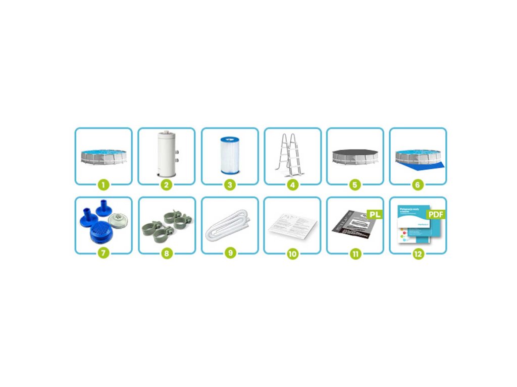 készlet a teljes felszereléssel –nem kell egyesével összegyűjteni minden elemet. Az INTEX medence megvásárlásával speciális kiegészítőkkel biztos lehet benne, hogy a legmagasabb minőséget kapja, és minden tökéletesen illeszkedik