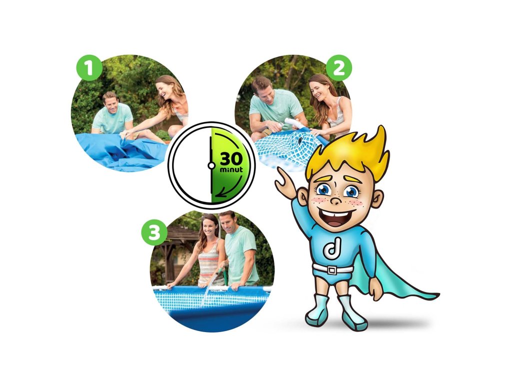 Basen ogrodowy stelażowy 450 x 220 x 84 cm ★★★★★ FULL ZESTAW 16W1 Nr katalogowy INTEX ® 28273 HIT Full zestaw ★★★★★ w świetnej cenie!!! ★ Klasyczny, przestronny basen stelażowy - idealny do zabawy! ★ Gotowy zestaw z kompletnym wyposażeniem – nie musisz sam szukać wszystkich elementów. ★ Kupując basen INTEX z dedykowanymi akcesoriami masz pewność, że otrzymasz najwyższą jakość i wszystko będzie do siebie pasować. ZAWARTOŚĆ ZESTAWU Basen stelażowy prostokątny 450 x 220 x 84 cm Pompa filtrująca Filtr do pompy Multitabletki 25 x 20g Dozownik chemii Termometr basenowy Pokrywa do basenu Mata pod basen Piłka plażowa Siatka do wyławiania nieczystości Sitka pompy Zaciski do pompy Węże do pompy Łatka naprawcza Instrukcja w języku polskim Przewodnik - do pobrania w aukcji Najwyższa jakość wykonania Wytrzymały 3 warstwowy materiał PVC Wzmocnienie z nylonowej siatki pomiędzy warstwami Powłoka odporna na przebicia Wnętrze imitujące mozaikę w kolorze biało-niebieskim Pokrywa Zabezpiecza wodę w basenie przed zabrudzeniami Uniemożliwia dzieciom wejście do basenu bez Twojej zgody Spowalnia utratę ciepła z wody Mata Zabezpiecza dno przed uszkodzeniem Chroni przed wnoszeniem do basenu piasku i innych zabrudzeń Izoluje basen od podłoża Czysta woda bez wysiłku W zestawie wszystko czego potrzebujesz, aby uzyskać krystaliczną wodę: Pompa filtrująca z technologię Hydro Aeration Ulepszony filtr kartuszowy 25 multitabletek – kompleksowy środek dezynfekujący Dozownik chemii z termometrem Siatka do wyławiania nieczystości Basen gotowy w 3 szybkich krokach: Rozwiń powłokę, Złóż stelaż- bez użycia narzędzi Nalej wodę - gotowe! Teraz rozłożenie tak dużego basenu zajmie Ci kilka chwil Basen to rozrywka dla całej rodziny Z myślą o Twoich dzieciach dodajemy kolorową piłkę DANE TECHNICZNE Basen Wymiary basenu 450 x 220 x 84 cm Waga 39,2 kg Zalecane wypełnienie wodą 90 % Pojemność 7 127 litrów Pompa Wydajność pompy 3 785 litrów/godz Zasilanie pompy 220 - 240 V Waga pompy 3,90 kg Filtr Typ A ❤️❤️❤️ Spraw by to lato było pełne cudownych wrażeń! ❤️❤️❤️Kiegészítő paraméterek