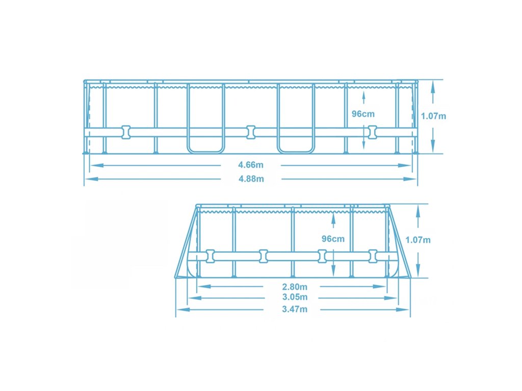 - A medence külső méretei 488 x 347 x 107 cm