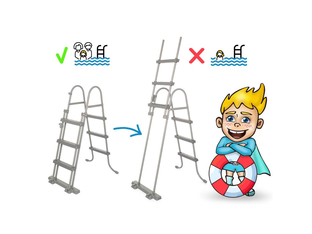 - Eltávolítható lépcsők megakadályozzák a gyermekek felügyelet nélküli belépését