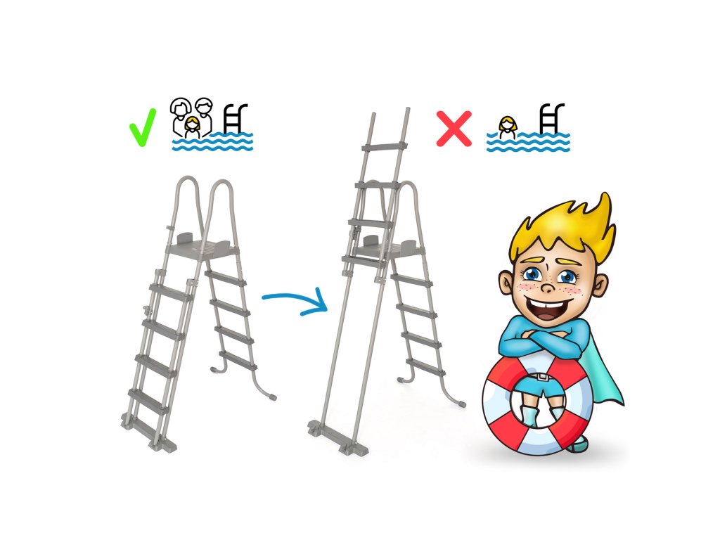 - Eltávolítható lépcsők megakadályozzák a gyermekek belépését felügyelet nélkül