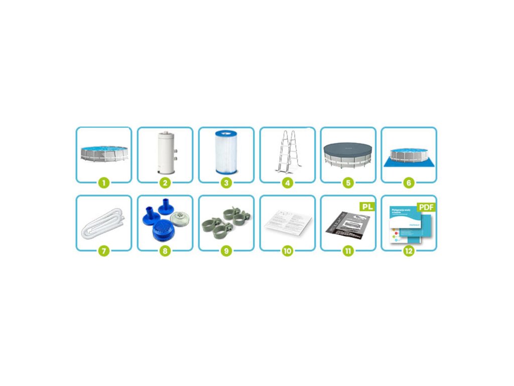 Basen ogrodowy stelażowy 457 x 107 cm ★★★★★ ZESTAW Z POMPĄ Nr katalogowy INTEX ® 26724 HIT LATA ★★★★★ ★ Basen o zmienionej kolorystyce, w modnym szarym odcieniu. ★ Gotowy zestaw z kompletnym wyposażeniem – nie musisz sam szukać wszystkich elementów. ★ Kupując basen INTEX z dedykowanymi akcesoriami masz pewność, że otrzymasz najwyższą jakość i wszystko będzie do siebie pasować. ZAWARTOŚĆ ZESTAWU Basen stelażowy 457 x 107 cm Pompa filtrująca Filtr do pompy Bezpieczna metalowa drabinka Pokrywa basenowa Mata pod basen Węże do pompy Sitka pompy Zaciski Łatka naprawcza Instrukcja w języku polskim Przewodnik - do pobrania w aukcji Po pierwsze: bezpieczeństwo dziecka Odłączane stopnie uniemożliwiają wejście dzieciom bez opieki Wysokość idealnie dobrana do wielkości basenu Wzmocniony metalowy stelaż odporny na korozje Antypoślizgowe stopnie Wygodne poręcze Po drugie: najwyższa jakość wykonania Wytrzymały 3 warstwowy materiał PVC Wzmocnienie z nylonowej siatki pomiędzy warstwami Powłoka odporna na przebicia Wnętrze imitujące mozaikę w kolorze biało-niebieskim Pokrywa Zabezpiecza wodę w basenie przed zabrudzeniami Uniemożliwia dzieciom wejście do basenu bez Twojej zgody Spowalnia utratę ciepła z wody Mata Zabezpiecza dno przed uszkodzeniem Chroni przed wnoszeniem do basenu piasku i innych zabrudzeń Izoluje basen od podłoża Dane techniczne Basen Wymiary basenu 457 x 107 cm Waga basenu 66,4 kg Zalecane wypełnienie wodą 90 % Pojemność 14 614 litrów Pompa Wydajność 3785 litrów/godz Zasilanie 220 - 240 V Typ filtra: typ A ❤️❤️❤️ Spraw by to lato było pełne cudownych wrażeń! ❤️❤️❤️Kiegészítő paraméterek