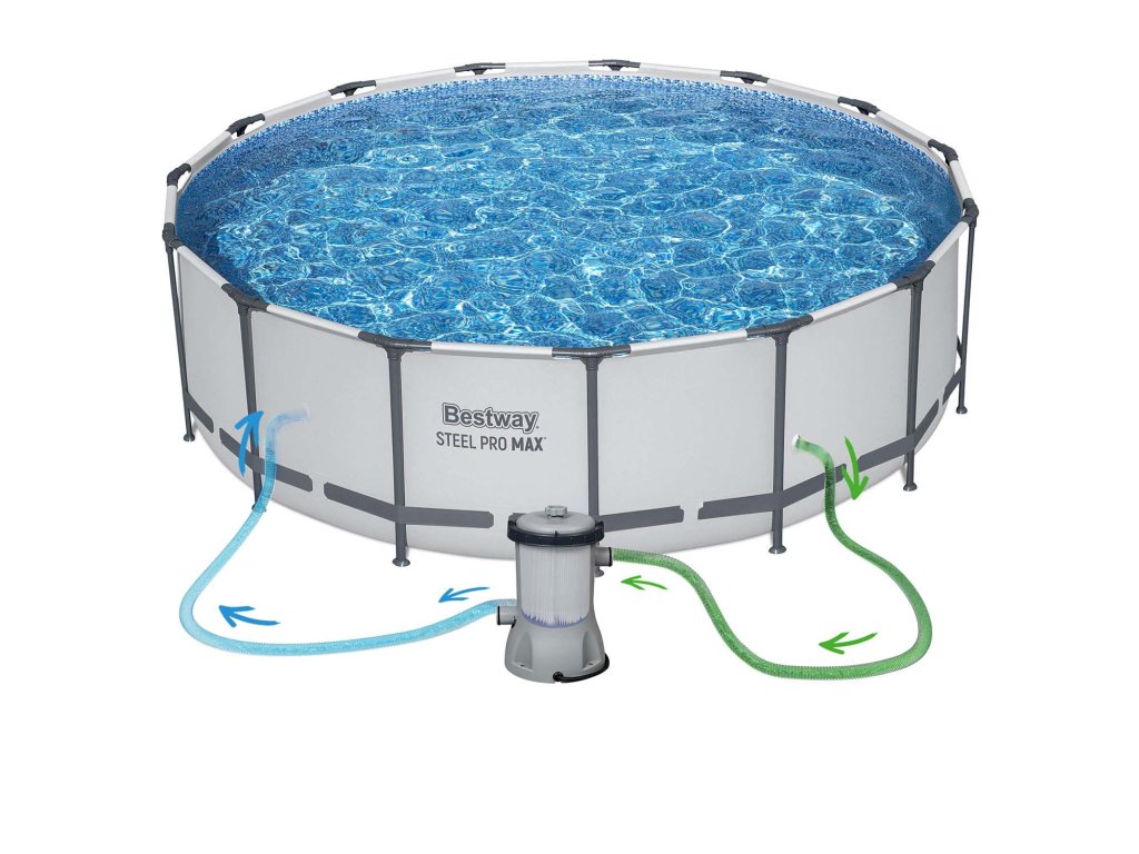 Kerti medence szerkezettel 457 x 122 cm 18 az 1-ben Bestway 56438 + buborékgép INGYEN