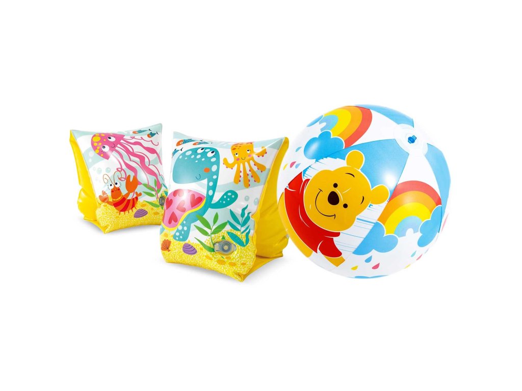 Figyelmeztetések: A felfújható úszógumik nem játékszerek, nem biztonsági eszközök, nem védenek a fulladástól. Olyan vízmélységben való használathoz, ahol a gyermek érzi a talajt a lábai alatt, felnőtt felügyelete mellett. A helyes felfújás és a berendezés használata szükséges a biztonság biztosításához, ne fújja túl. Ügyeljen a biztonsági szelep helyes zárására, és hogy a varratok nincsenek-e sérülve. Súlyhatár 18-30 kg, életkor 3 és 6 év között.