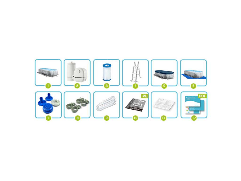 Ha megvásárolja az INTEX medencét adedikált kiegészítőkkel, biztos lehet benne, hogy a legjobb minőséget kapja, és minden tökéletesen fog illeszkedni egymáshoz. A szett tartalma