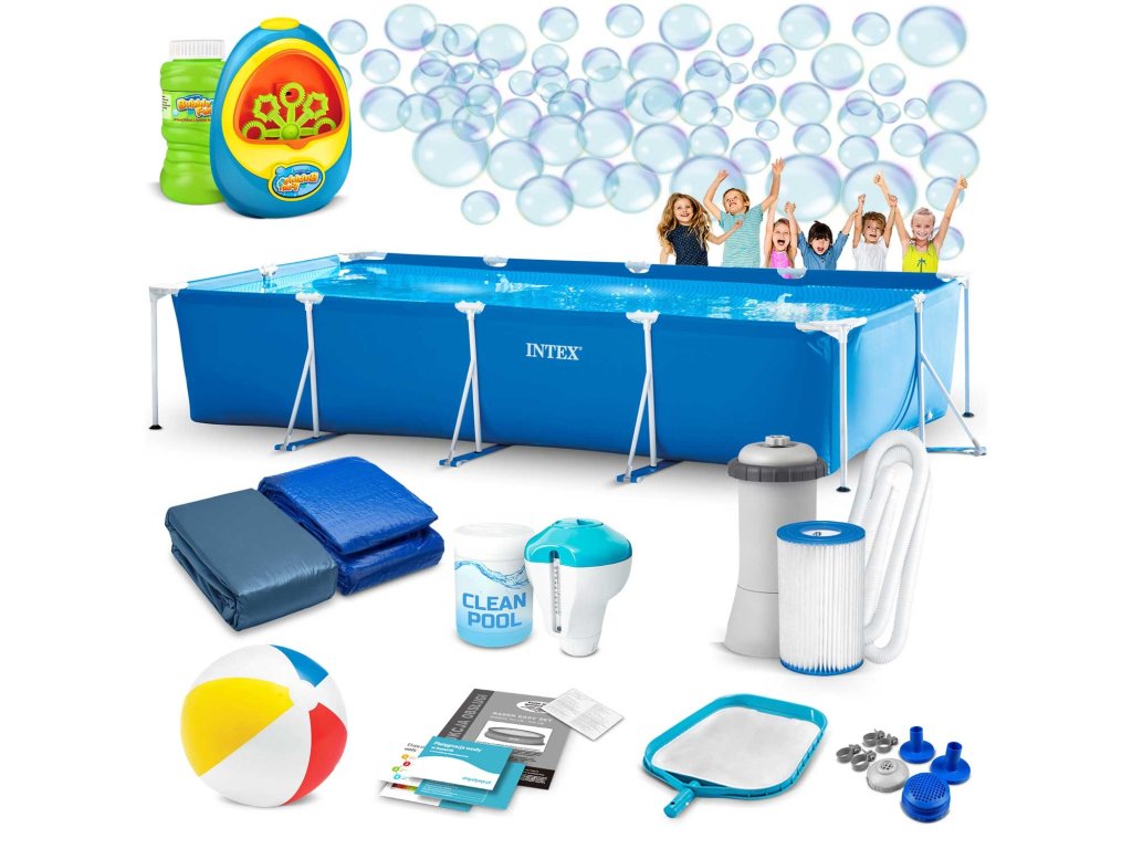 Basen ogrodowy stelażowy 450 x 220 x 84 cm ★★★★★ FULL ZESTAW 16W1 Nr katalogowy INTEX ® 28273 HIT Full zestaw ★★★★★ w świetnej cenie!!! ★ Klasyczny, przestronny basen stelażowy - idealny do zabawy! ★ Gotowy zestaw z kompletnym wyposażeniem – nie musisz sam szukać wszystkich elementów. ★ Kupując basen INTEX z dedykowanymi akcesoriami masz pewność, że otrzymasz najwyższą jakość i wszystko będzie do siebie pasować. ★ GRATIS zestaw do wytwarzania baniek (zabawka i płyn). ZAWARTOŚĆ ZESTAWU Basen stelażowy prostokątny 450 x 220 x 84 cm Pompa filtrująca Filtr do pompy Multitabletki 25 x 20g Dozownik chemii Termometr basenowy Pokrywa do basenu Mata pod basen Piłka plażowa Siatka do wyławiania nieczystości Sitka pompy Zaciski do pompy Węże do pompy Łatka naprawcza Instrukcja w języku polskim Przewodnik - do pobrania w aukcji Najwyższa jakość wykonania Wytrzymały 3 warstwowy materiał PVC Wzmocnienie z nylonowej siatki pomiędzy warstwami Powłoka odporna na przebicia Wnętrze imitujące mozaikę w kolorze biało-niebieskim Pokrywa Zabezpiecza wodę w basenie przed zabrudzeniami Uniemożliwia dzieciom wejście do basenu bez Twojej zgody Spowalnia utratę ciepła z wody Mata Zabezpiecza dno przed uszkodzeniem Chroni przed wnoszeniem do basenu piasku i innych zabrudzeń Izoluje basen od podłoża Czysta woda bez wysiłku W zestawie wszystko czego potrzebujesz, aby uzyskać krystaliczną wodę: Pompa filtrująca z technologię Hydro Aeration Ulepszony filtr kartuszowy 25 multitabletek – kompleksowy środek dezynfekujący Dozownik chemii z termometrem Siatka do wyławiania nieczystości Basen gotowy w 3 szybkich krokach: Rozwiń powłokę, Złóż stelaż- bez użycia narzędzi Nalej wodę - gotowe! Teraz rozłożenie tak dużego basenu zajmie Ci kilka chwil Basen to rozrywka dla całej rodziny Z myślą o Twoich dzieciach dodajemy kolorową piłkę DANE TECHNICZNE Basen Wymiary basenu 450 x 220 x 84 cm Waga 39,2 kg Zalecane wypełnienie wodą 90 % Pojemność 7 127 litrów Pompa Wydajność pompy 3 785 litrów/godz Zasilanie pompy 220 - 240 V Waga pompy 3,90 kg Filtr Typ A ❤️❤️❤️ Spraw by to lato było pełne cudownych wrażeń! ❤️❤️❤️Kiegészítő paraméterek