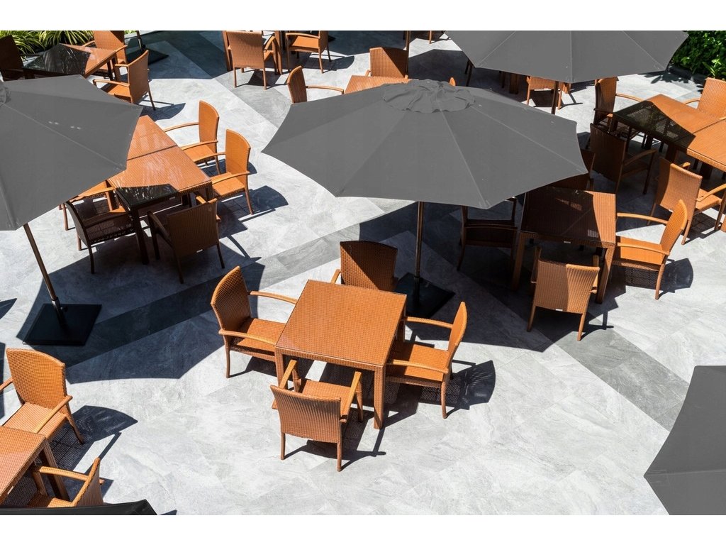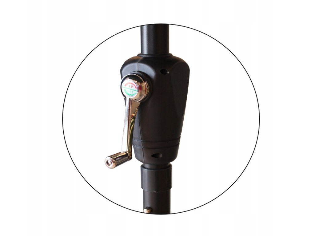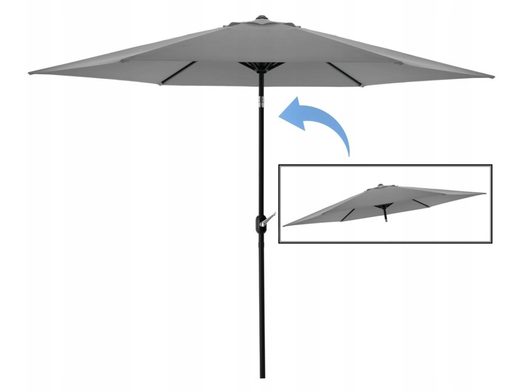 A napernyő magas minőségű anyagból készült. A kupola vízálló anyagból készült. Kézi fogantyúval rendelkezik, aminek köszönhetően egyszerű a napernyő össze- és szétszerelése. Termékünk egy tartós, porfestett acélból készült vázzal van ellátva. A kupolában különleges szellőzőnyílás található. Továbbá, a napernyő vízálló polyester borítással rendelkezik fekete színben.