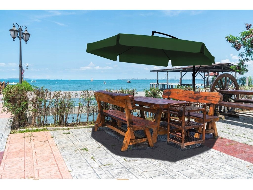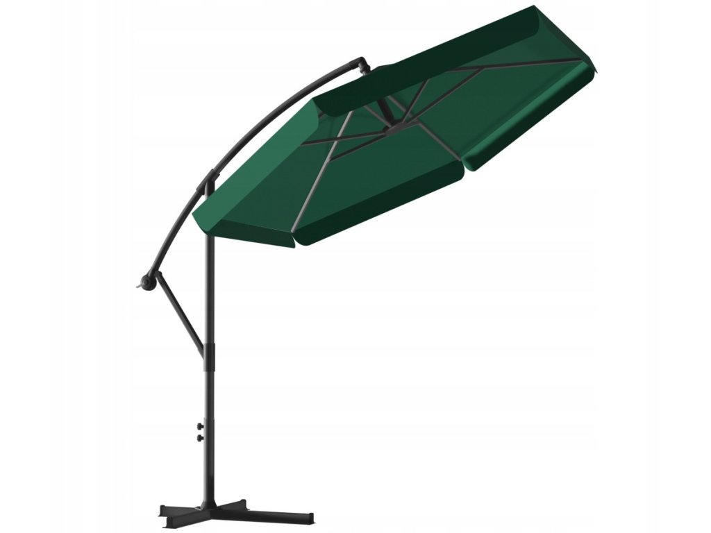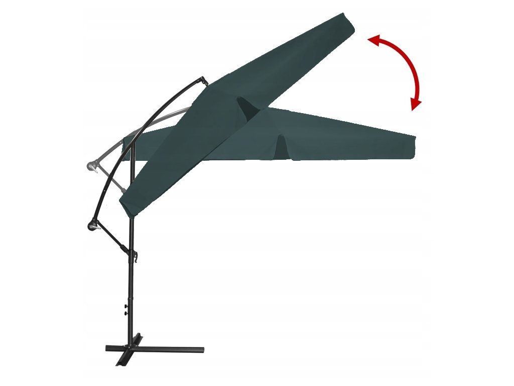 A napernyő magas minőségű anyagból készült. A tető vízálló anyagból készült. Termékünket egy acélból készült, porbevonatos, szilárd váz jellemzi. A tetőn speciális szellőzőnyílás található. Ezen kívül a napernyő tartalmaz egy vízálló, fekete színű poliészter borítót.