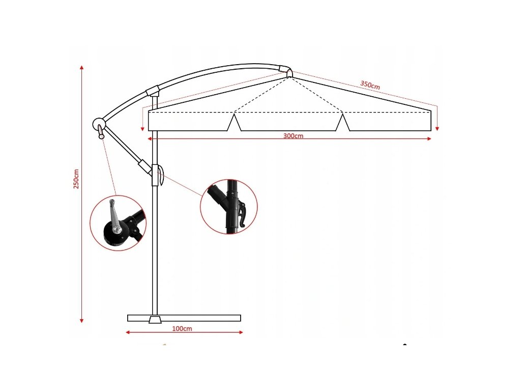 - A napernyő tető átmérője: 300 cm