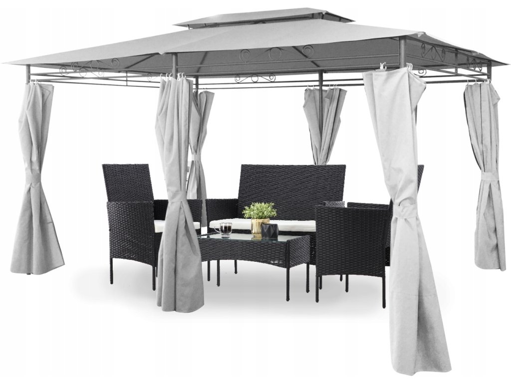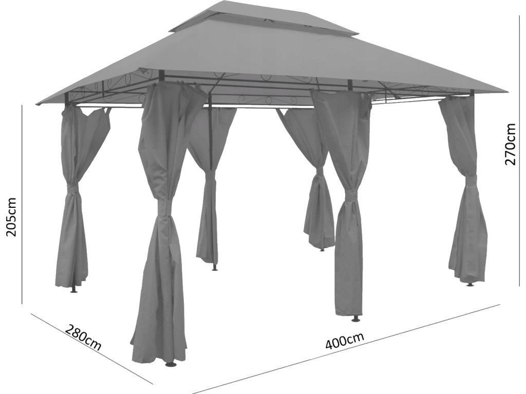 A stabil pavilon nagyszerű termék mindenkinek, aki szereti a kertben tölteni az időt. Az összeszerelés mindössze 30 percet vesz igénybe. Az szerkezet rozsdamentes anyagokból készült, és a borítása vastag szövetből van.