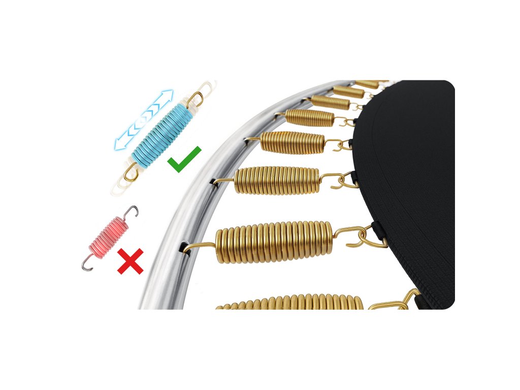 - Kiváló minőségű ugrófelület (batut) - vízálló, rugalmas, 8-szorosan varrott.