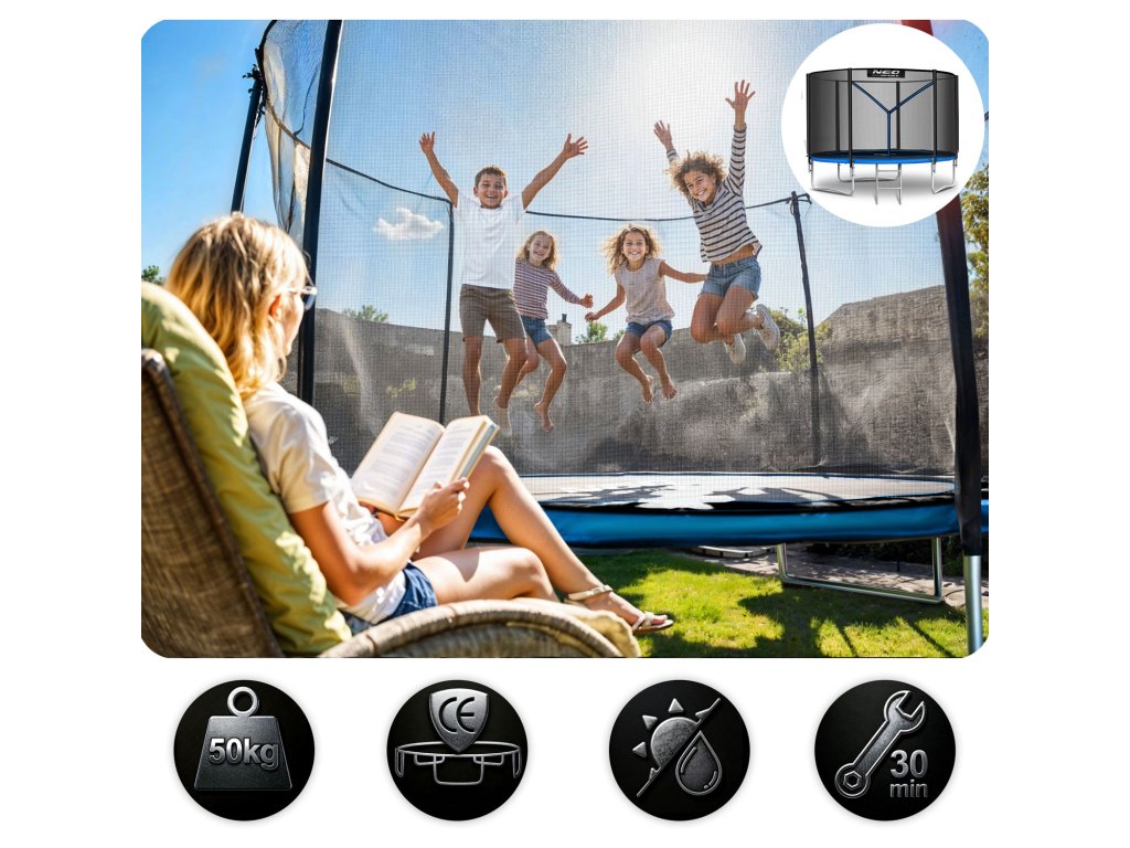 - a csomagban: kerti trambulin, védőháló, fém létra, használati utasítás