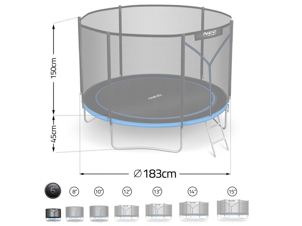 Kerti trambulin 6ft/183cm külső hálóval és létrával Neo-Sport