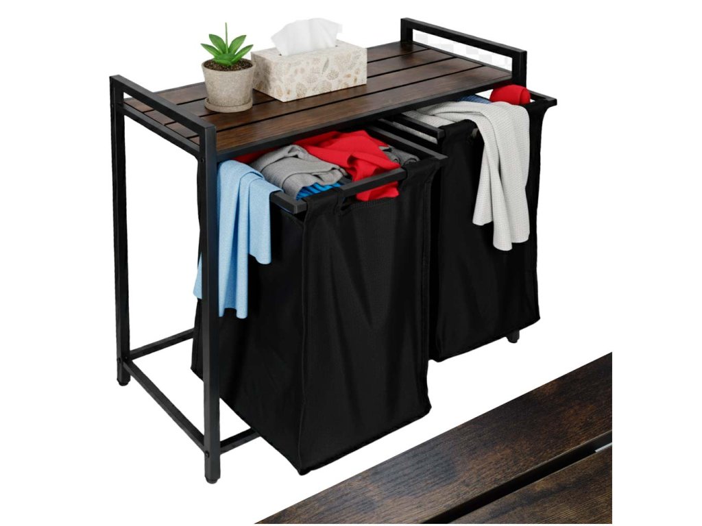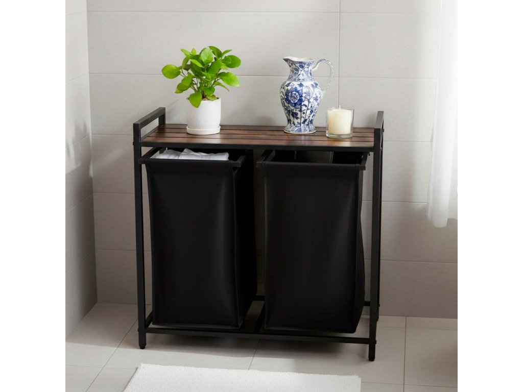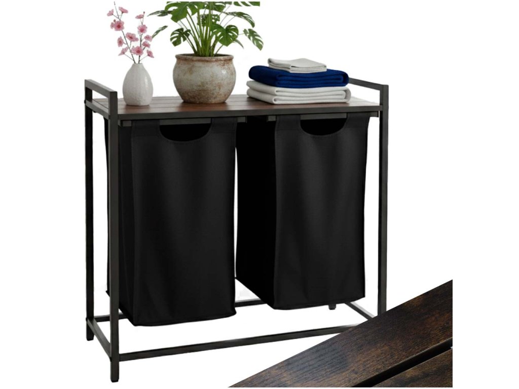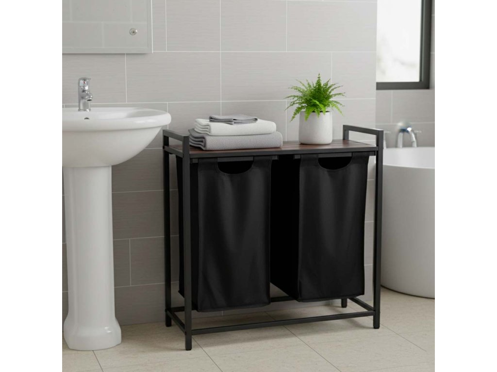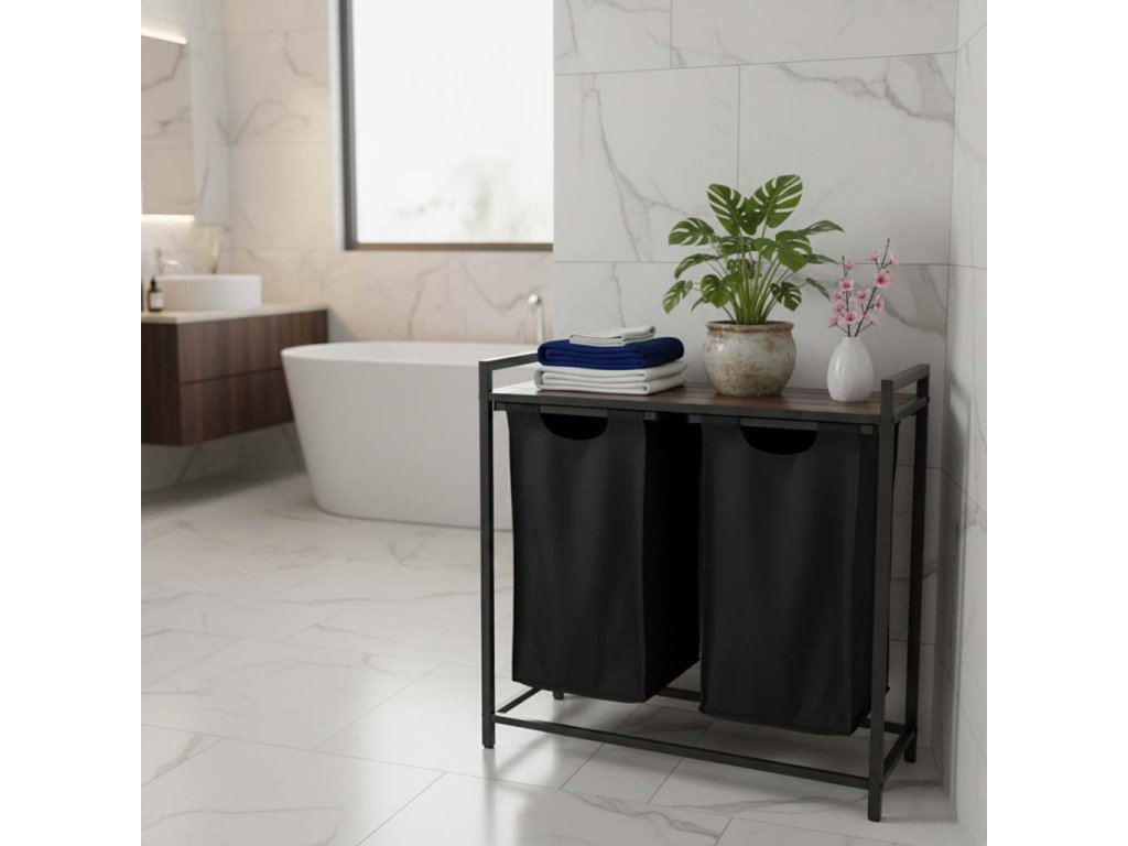 Két rekeszes szennyestartó felső polccal, 76 l űrtartalommal