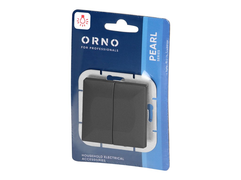 Kétgombos süllyesztett kapcsoló megvilágítással Pearl, 10A, 250V, WP-2P/S, fekete